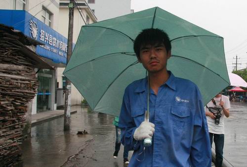 來到一個弄堂口,小吳說,你們不用跟我進來,里面只有一只表,等會還要原來返回。不一會,他回來了。因為弄堂又長又窄,小吳只好撐下傘鉆出來。