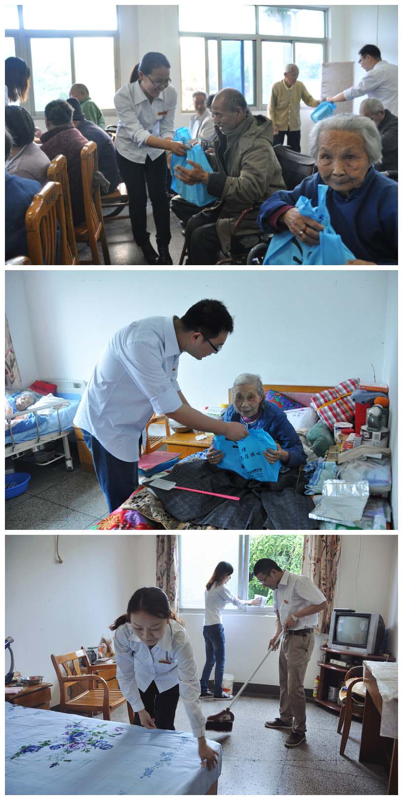 為發(fā)揚中華民族尊老愛老的傳統(tǒng)美德,增強我公司青年志愿者尊老愛老的意識。5月8日上午,公司10多名志愿者來到柯橋夕陽紅中心,為老人鋪床打掃衛(wèi)生,并將公司精心準備的蛋糕、水果、毛巾等慰問品一一送到老人們的手中,奉獻自己的一份愛心。